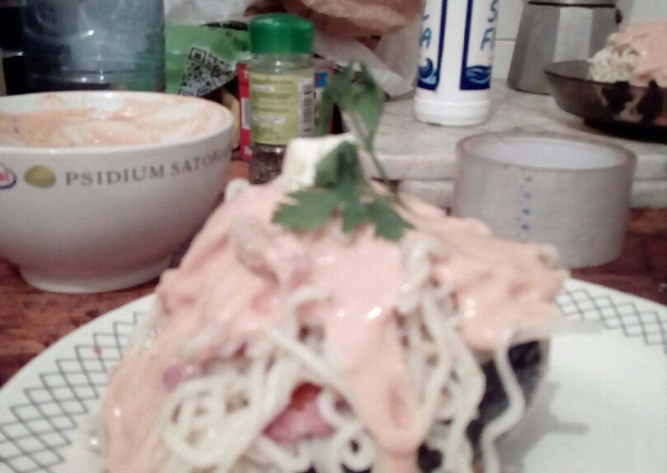 - A continuación haremos una salsa rosa, que también añadiremos a la ensalada, con un poco de sal(al gusto) y pimienta negra molida