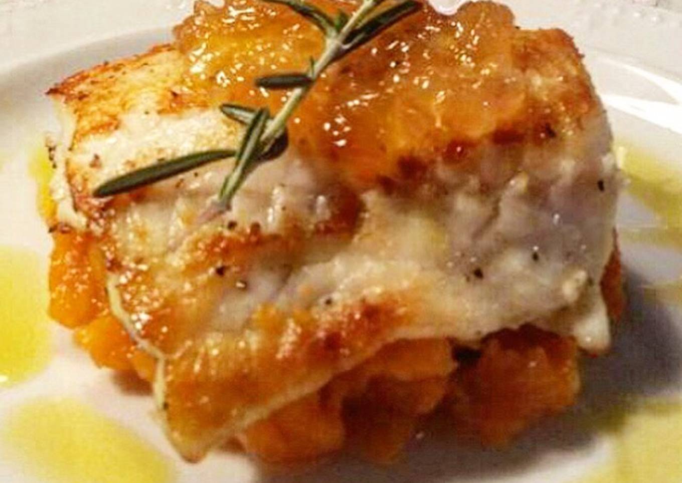 Steps to make to make Bacalao con cama de batata y cebolla caramelizada