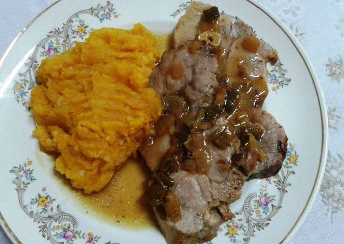 #mirecetario Para los que gustan de comidas agridulces, hoy les dejo esta receta de bondiola de cerdo con salsa de mostaza y miel. La pueden preparar con un carré de la misma forma, o con lomitos, controlando en este caso la cantidad de líquidos, ya que los tiempos de cocción serán distintos. Lo ideal es, a mi gusto, acompañarla con puré de batatas pero en este caso, lo acompañé con puré mixto. Muy fácil, como siempre, así que a hacerla pronto!