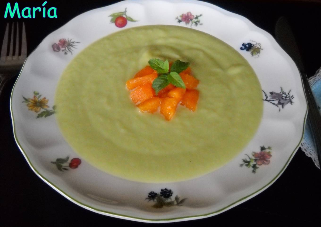 Hoy he preparado esta crema con espárragos y la he acompañado con aguacate porque me ha parecido una buena combinación.