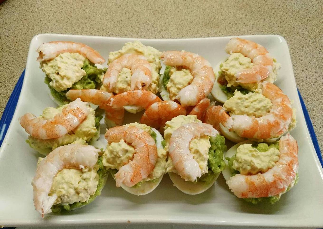 Huevos rellenos de guacamole y langostinos