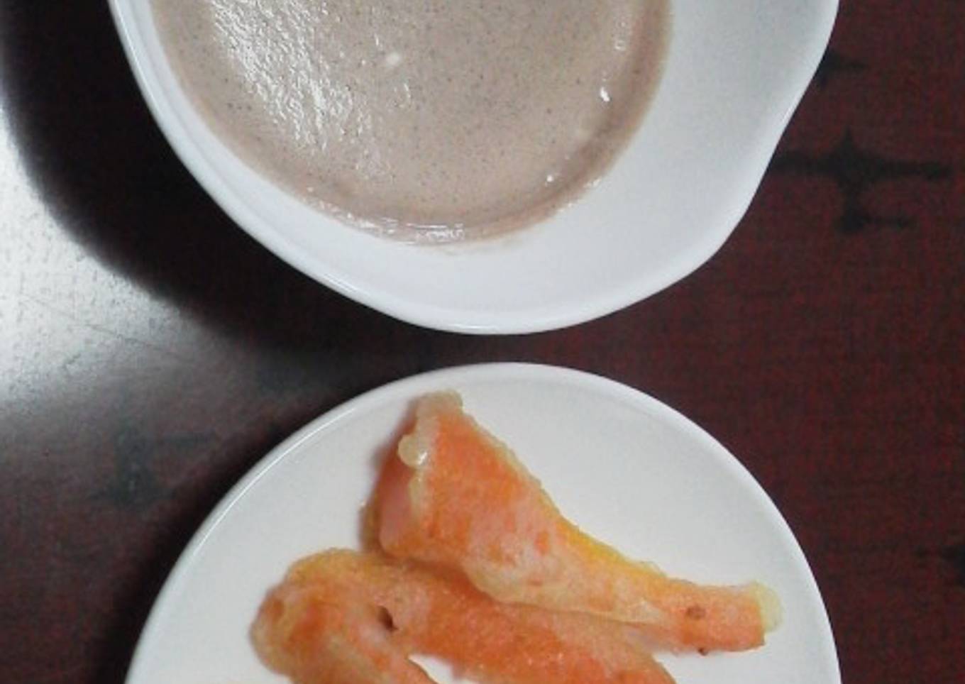 - Sacar en el plato, echar la salsa y o espolvorear canela o lo que se desee. Esperar que enfríe un poco y servir. Se puede servir con un chocolate de taza que se pueda tolerar. Yo simplemente derreti una gelatina sabor manzana, con cacao y canela en polvo. Luego añadí tres marshmallows/nubes y las mezcle removiendo. Rico con el tempura, aunque no sabía que hacer con lo que sobró por lo dulzón.