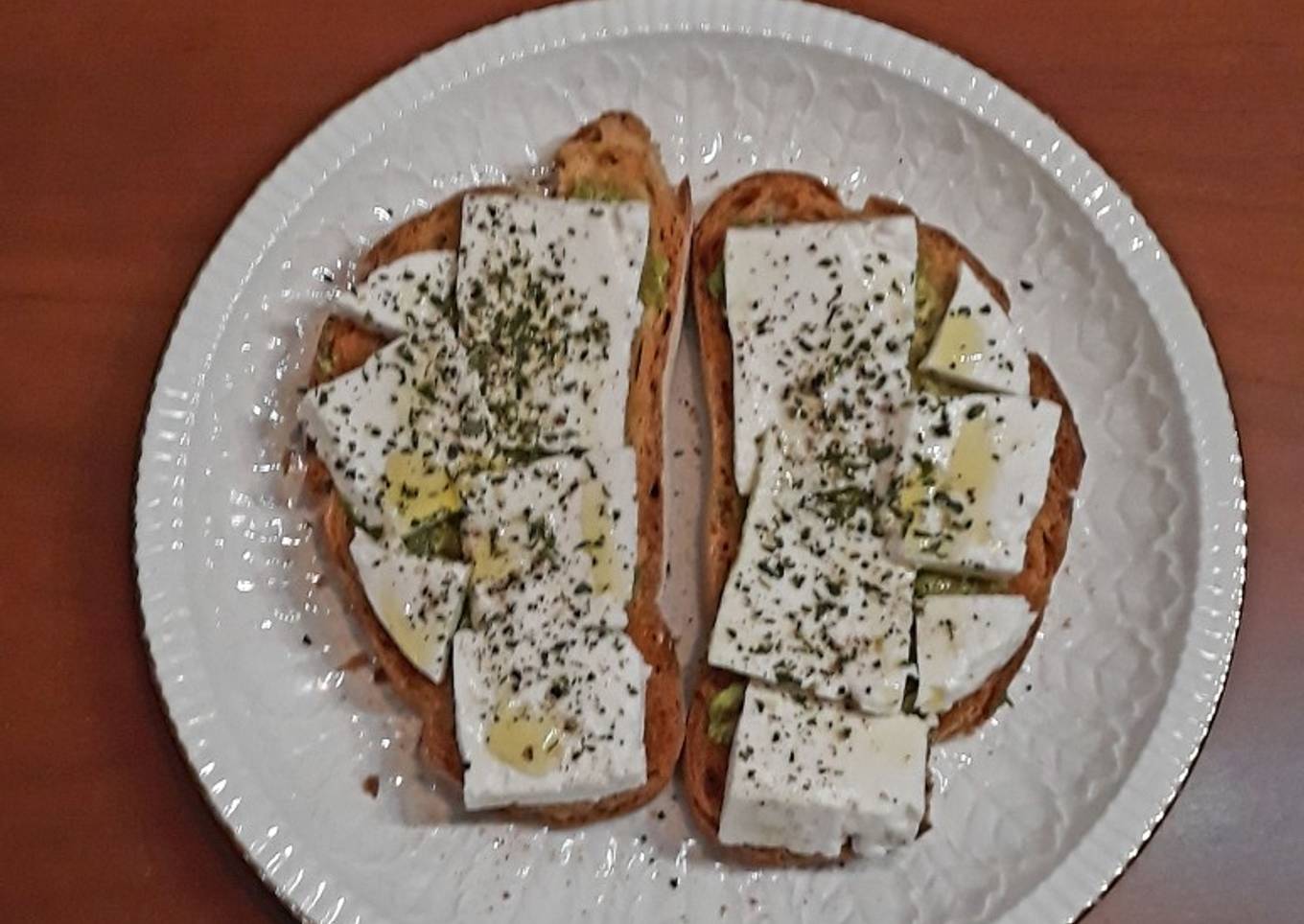 Tostadas con aguacate, queso fresco al ajo y perejil