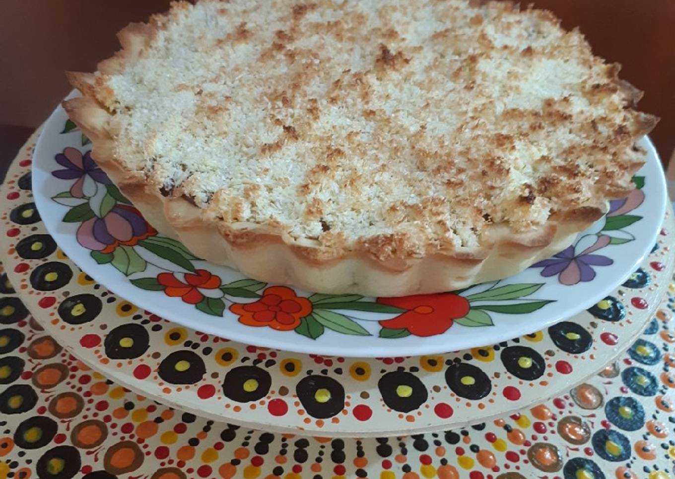 Exquisita y fácil que combina sabiamente sabores y texturas. Un clásico. Con una base de tarta de masa a foncer, masa sablée, masa brisée o masa frolla (pueden buscar las recetas en mi recetario). Cuando cocino alguna tarta si puedo hago otra base y la reservo para algún antojito o apuro. El delicioso dulce de leche repostero bien argentino es un must, aunque podría reemplazarse con alguna mermelada de frutos rojos, cerezas o incluso dulce de batata o membrillo y sobre esto una cubierta que le brinda la maravilla del sabor y la textura del coco rallado... a probarla pues...