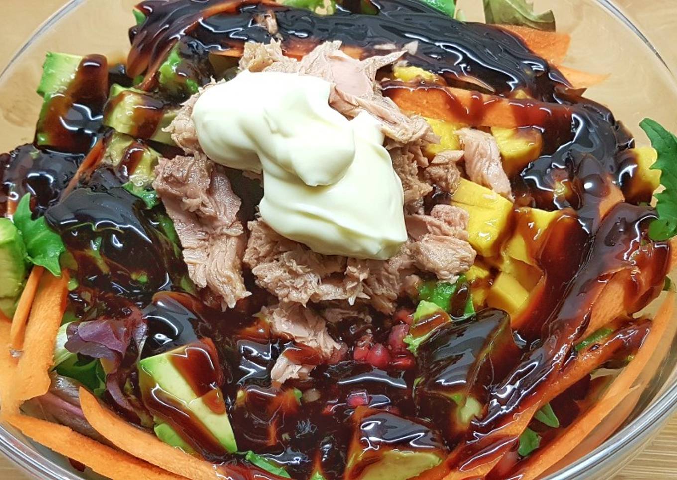 - Una vez presentada la ensalada procedemos a mezclar todos los ingredientes para servir a los comensales